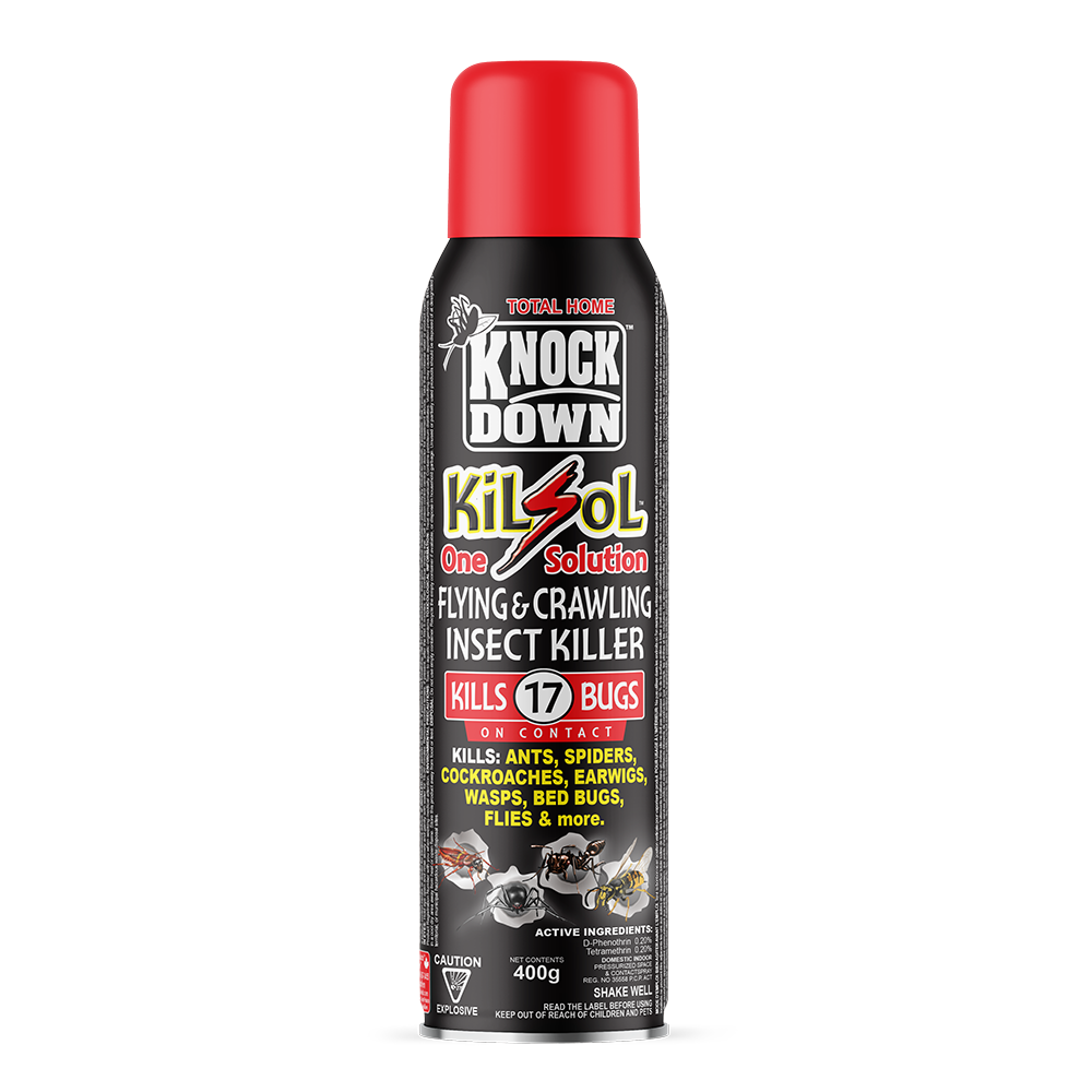 KNOCK DOWN™ – KILSOL™ ONE CAN – ONE SOLUTION™ 17 in 1! FLYING & CRAWLING INSECT KILLER. Deals with all the major Pest issues in Canada!
